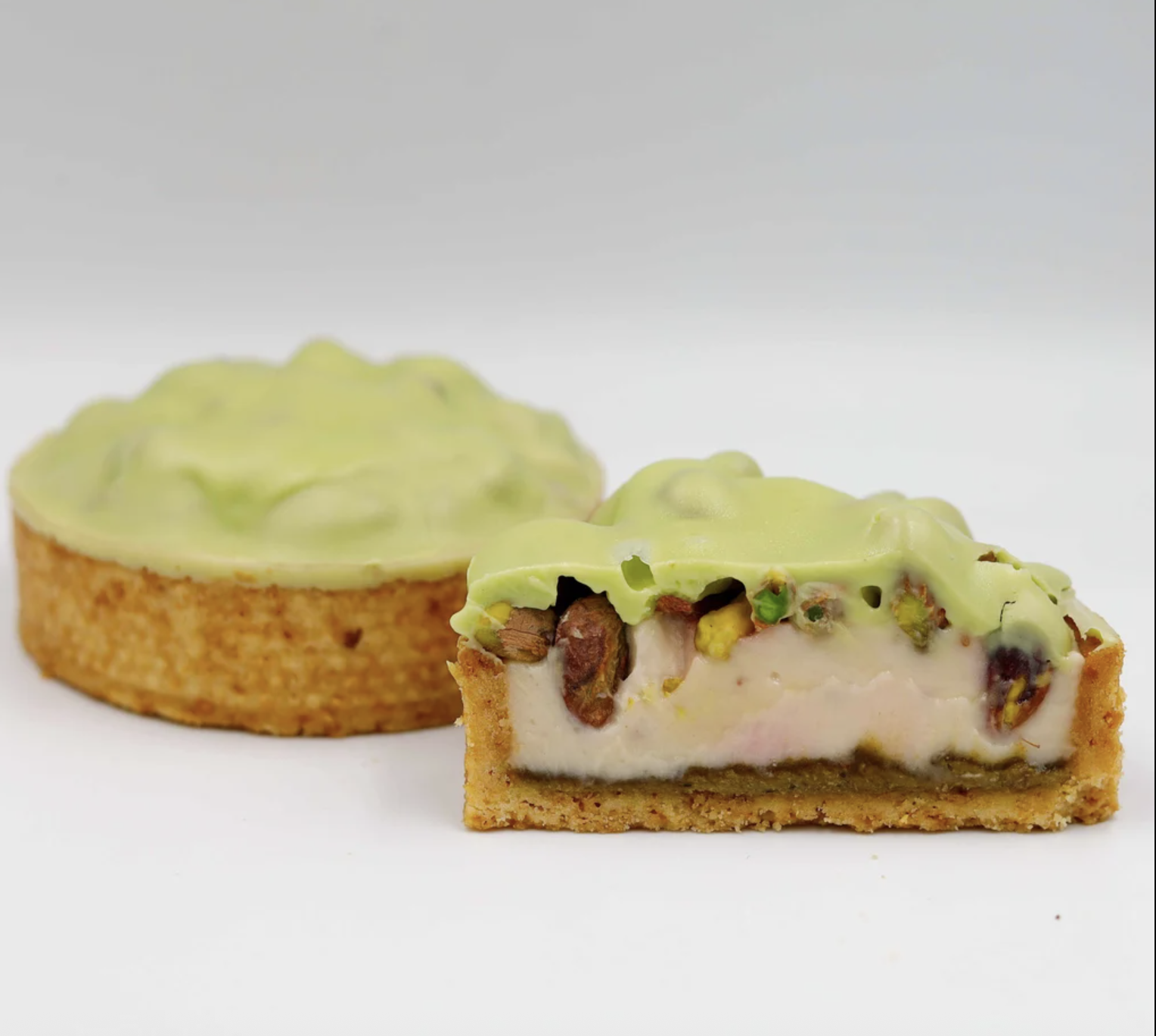 ТАРТ З НІЖНИМ КРЕМ-СИРОМ, ФІСТАШКАМИ ТА СОКОВИТОЮ МАЛИНОЮ (6 шт)